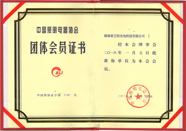 中國照明電器協(xié)會(huì)團(tuán)體會(huì)員證書