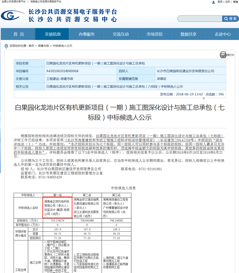 2018年6月19日,湖南省正陽光電科技有限公司成功中標白果園化龍池片區有機更新項目(一期)施工圖深化設計與施工總承包(七標段)。熱烈祝賀湖南省正陽光電科技有限公司...
